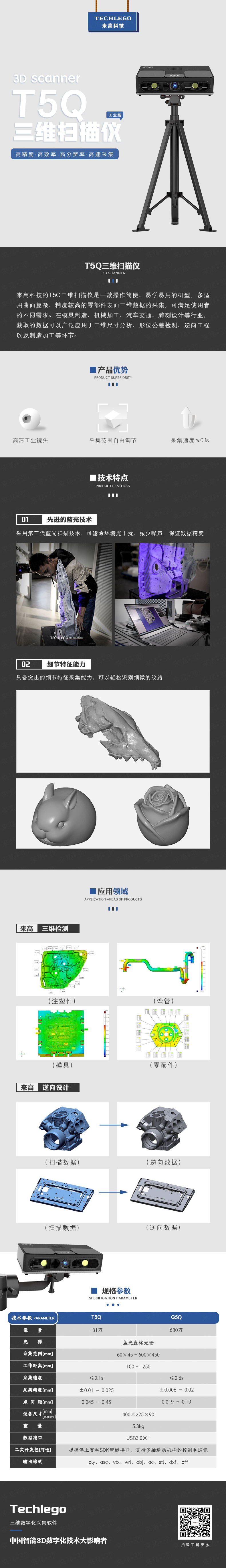 來高科技的T5Q三維掃描儀是一款操作簡便、易學(xué)易用的機(jī)型,多適用曲面復(fù)雜、精度較高的零部件表面三維數(shù)據(jù)的采集,可滿足使用者的不同需求。在模具制造、機(jī)械加工、汽車交通、雕刻設(shè)計等行業(yè),獲取的數(shù)據(jù)可以廣泛應(yīng)用于三維尺寸分析、形位公差檢測、逆向工程以及制造加工等環(huán)節(jié)。