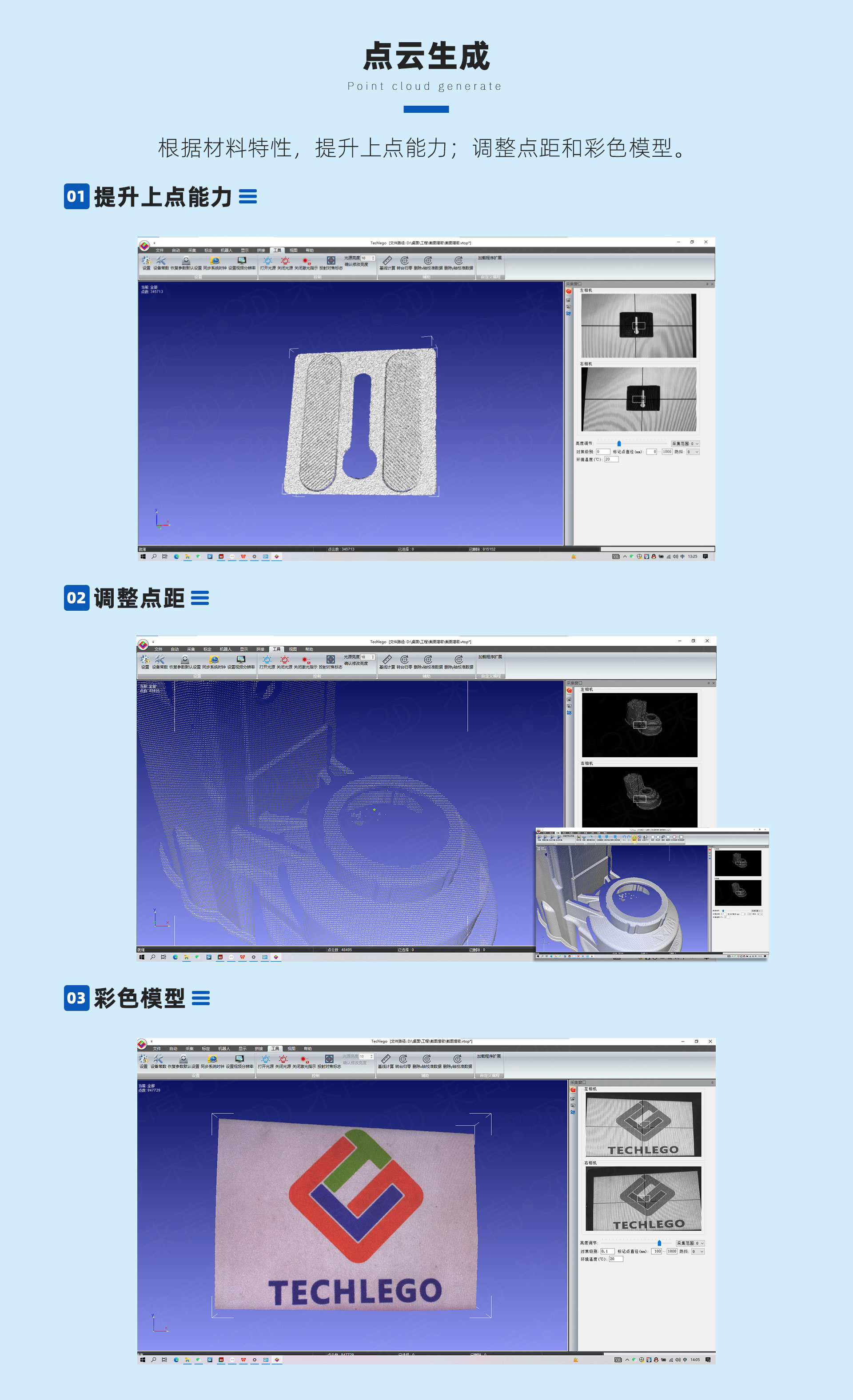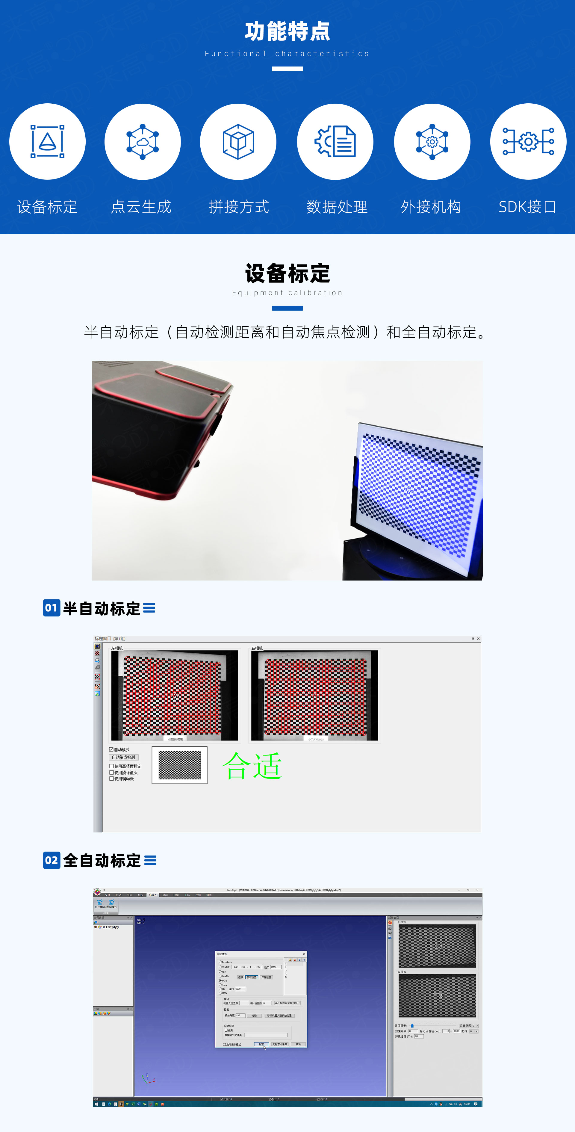 產品功能:三維點云采集、拼接、處理
