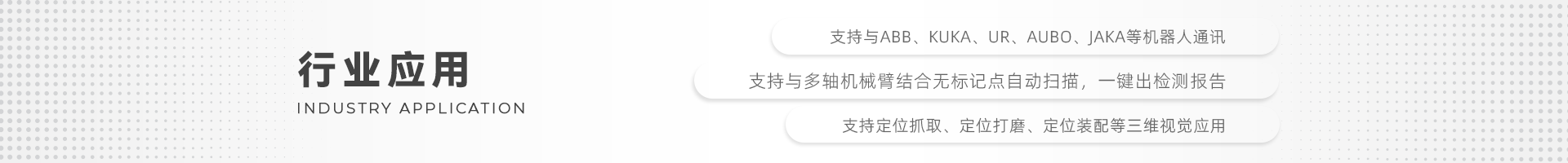 ▌來高科技一直致力于“三維掃描系統”和“智能三維機器視覺系統”的研發、生產、銷售以及服務。3D掃描儀以“高精度、高效率、高分辨率”為主要特點。其主要核心技術包括:藍光三維掃描儀、攝影測量系統、自動轉臺、機器人(工業機器人/協作機器人)、3D相機等。主要服務領域有工業制造、教育科研、醫療、文化等。現已為上百所院校和上千家知名企業提供相關的設備和技術服務。