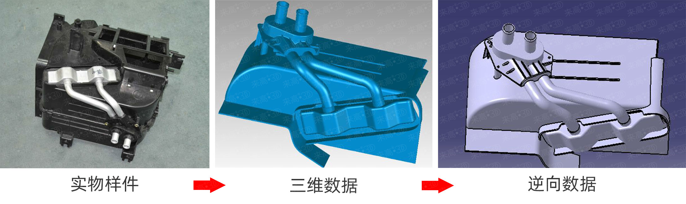 逆向設計可以簡單地理解為,根據已經存在的產品,反向推出產品設計數據(包括各類設計圖或數據模型)的過程。逆向設計并不是簡單的掃描以及復制的過程,逆向設計可以在缺乏原始設計圖紙的情況下,對實物原形進行數據采集,經過數據處理、三維重構等過程,獲得具有相同形狀結構的三維模型。然后,再對原型進行復制或基于點云對原型進行優化設計以及創新設計(逆向設計軟件結合其它CAD/CAM/CAE軟件進行數據處理)。