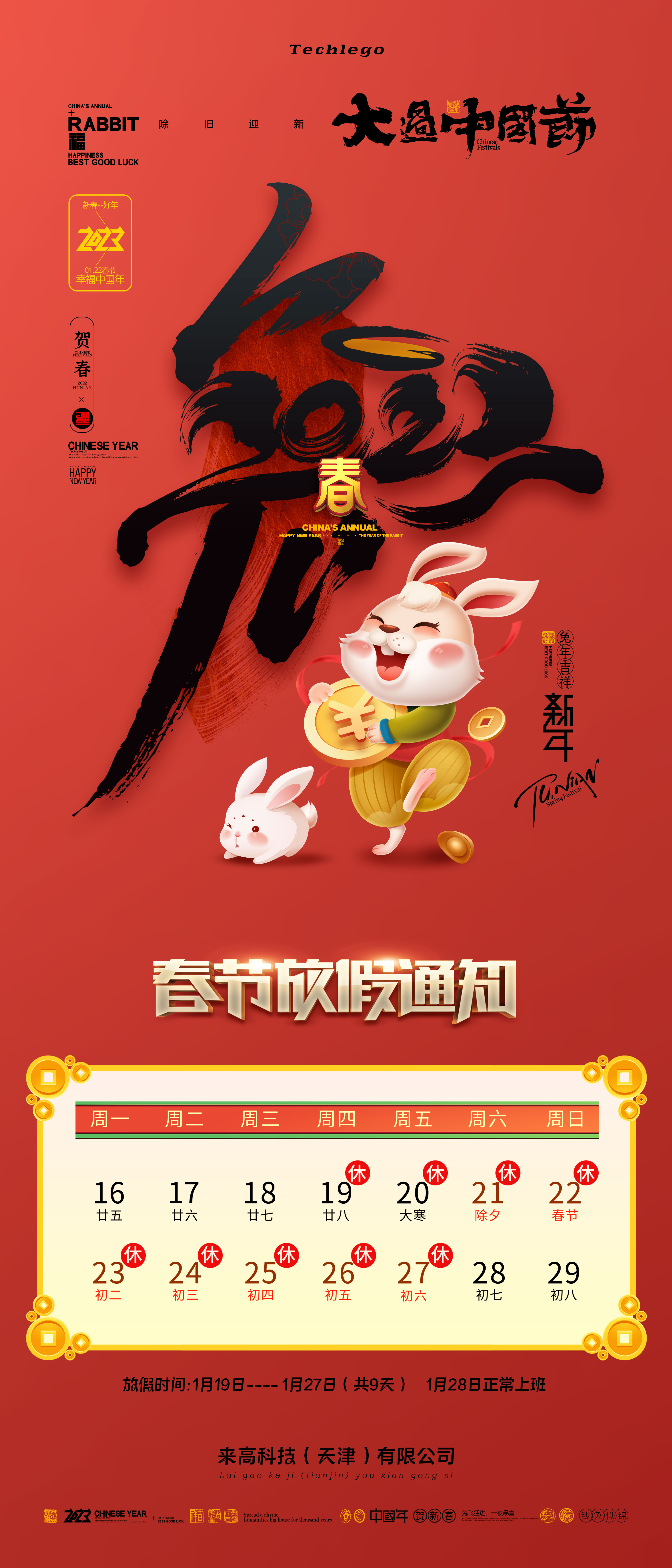 值此新春來臨之際,我們懷著感恩的心情,向您致以親切的問候和誠摯的謝意:感謝您在過去的一年里對來高科技(天津)有限公司一如既往的支持與幫助,感謝您的鼎力相助使得我們的合作充滿信心并從中享有收獲和喜悅!