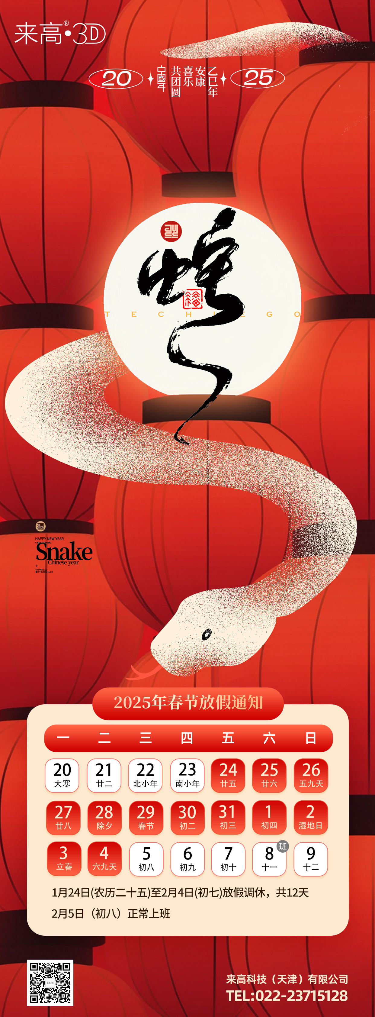 隨著農歷新年的鐘聲即將敲響,來高科技(天津)有限公司全體員工懷著感恩的心,向一直以來支持我們的廣大客戶表示最誠摯的感謝。過去的一年里,因為有您的支持與信任,我們得以不斷成長進步,攜手共創了無數輝煌的成績,也達成了不少重要的成就。