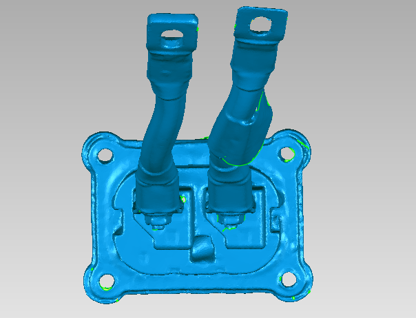本次掃描客戶不允許噴粉,掃描的物體從車上直接拆下,掃描完成需要重新裝回車內(nèi)。對(duì)于反光物體的掃描,要特別注意反光部位,可以通過在軟件中修改參數(shù),直接掃描,獲取完整的數(shù)據(jù)