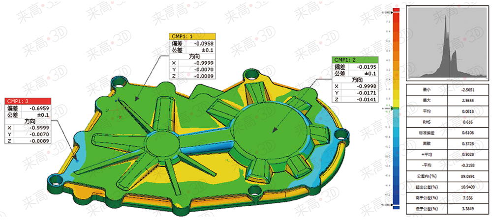 什么是三維檢測?將三維掃描得到的三維模型與CAD文件進行對齊后,軟件可以分析出掃描模型與CAD模型的整體偏差,并以不同顏色的信息顯示出來。除此之外,還可以進行形位公差檢測和2D尺寸檢測,并生成報告,讓客戶直觀地查看工件誤差情況。這種檢測方式又稱全尺寸檢測,可以比較周密地檢測工件的尺寸誤差,尤其是對曲面工件的檢測。
