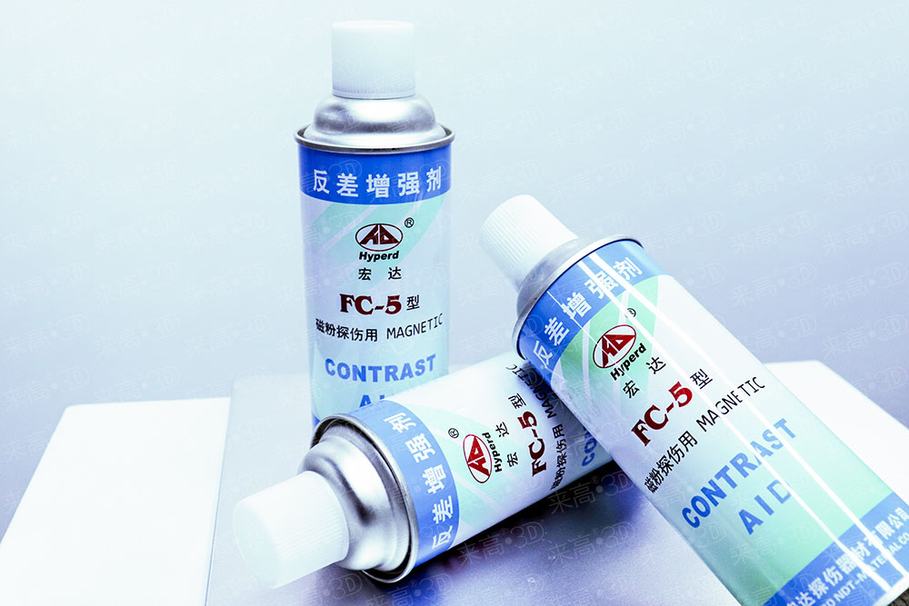 顯像劑又名為磁粉探傷劑、反差增強(qiáng)劑,是視覺檢測(cè)領(lǐng)域的基礎(chǔ)耗材。它的主要作用是改變零件表面光環(huán)境,減少檢測(cè)或掃描過程中的光污染,三維檢測(cè)中,零件表面噴涂顯像劑后,會(huì)使零件達(dá)到白色漫反射的狀態(tài),從而相機(jī)可以識(shí)別出更加清晰且準(zhǔn)確的數(shù)據(jù)。