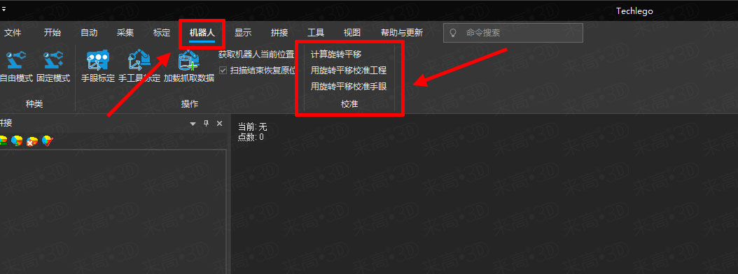 Techlego三維掃描儀針對(duì)上面的問題,提出了具有開創(chuàng)性地“一次標(biāo)定,多次校準(zhǔn)”的解決方案。在新版本techlego三維掃描儀軟件中已經(jīng)支持該功能(該項(xiàng)功能位于軟件的機(jī)器人選項(xiàng)卡內(nèi))