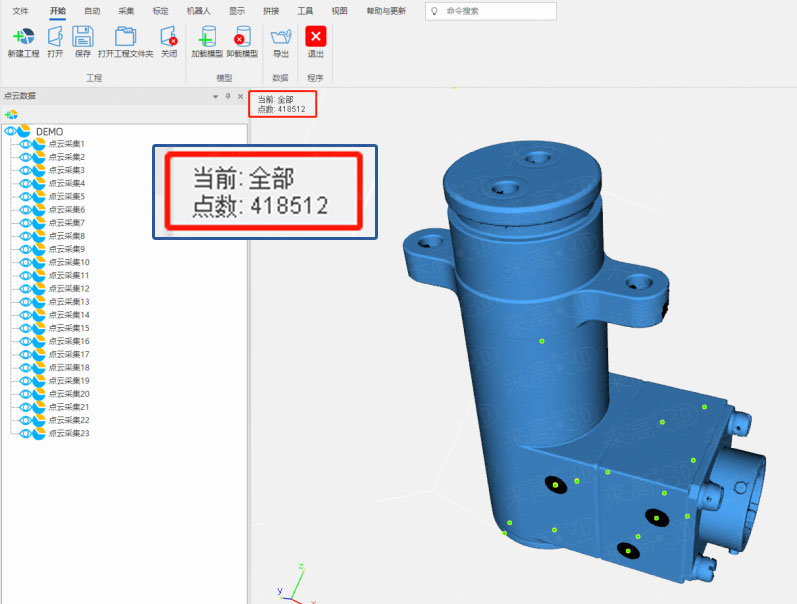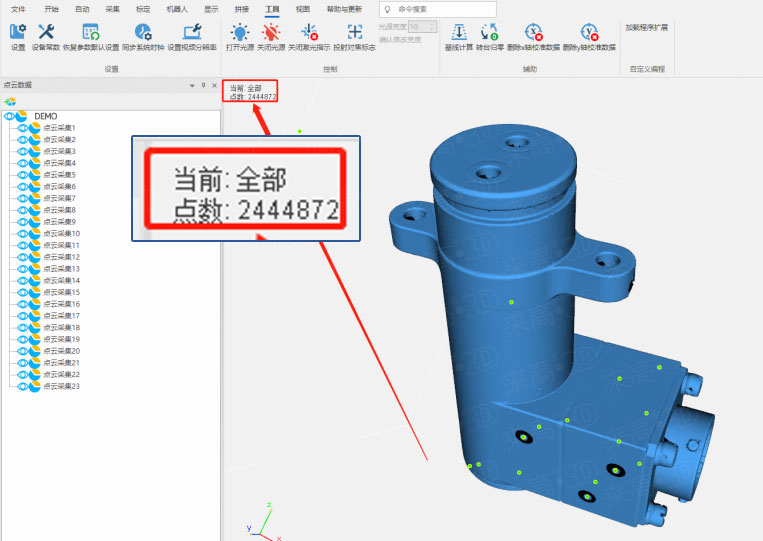 來高科技針對這個問題,在點云處理上進行了升級,當掃描一個零件需要幅數(shù)非常多的時候,可以采用預處理掃描技術(shù),預處理后可以繼續(xù)掃描。