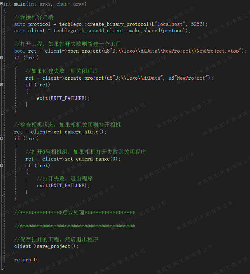 使用client變量對其進行調用,存入all_point變量來獲取客戶端打開工程掃描到的點云數據。