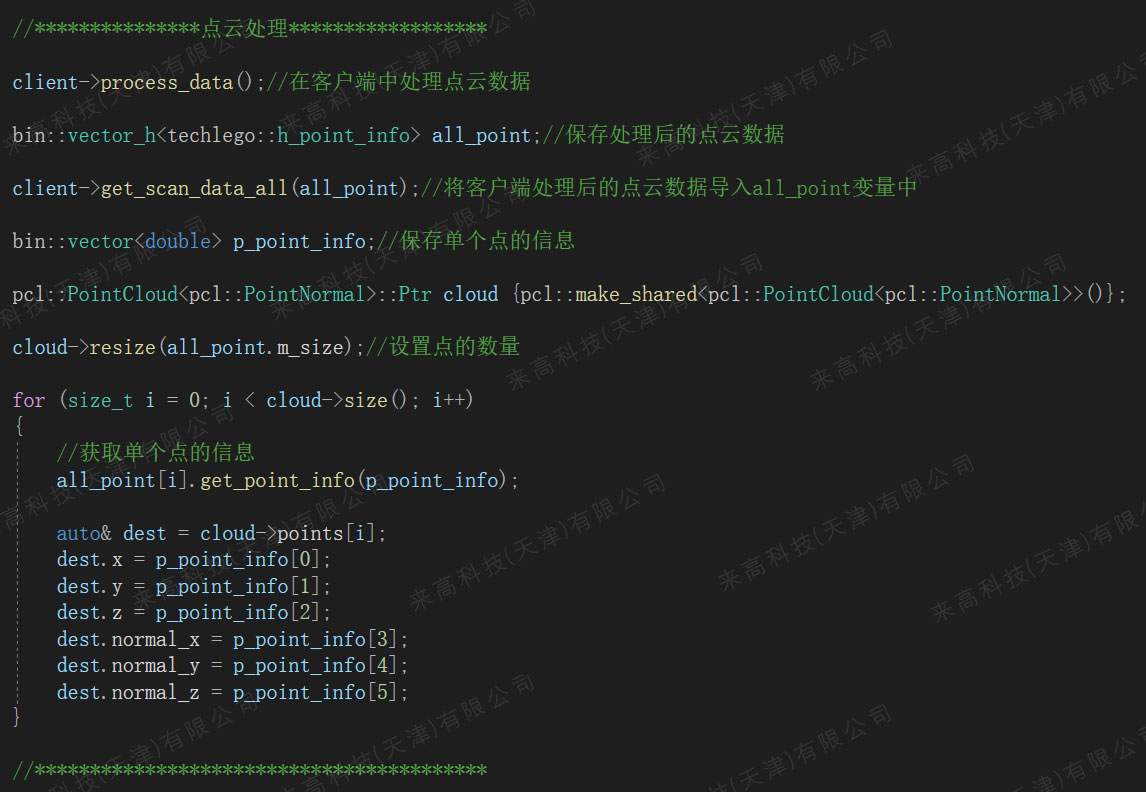 然后使用process_data函數預處理點云數據,其返回值為bool類型,表示處理點云是否成功。想要從客戶端中導入點云數據,需要使用一個techlego::h_point_info結構來保存單個點的信息;準備一個保存techlego::h_point_info的數組,可以保存整個點云的信息。