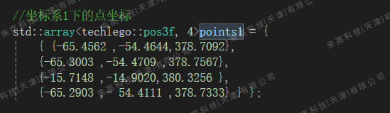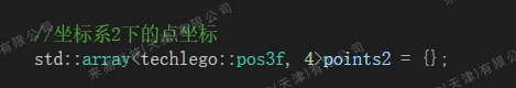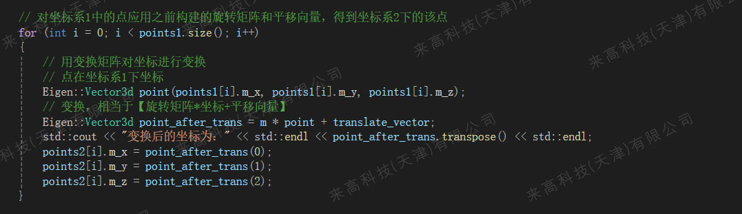 // 對坐標系1中的點應用之前構建的旋轉矩陣和平移向量,得到坐標系2下的該點
