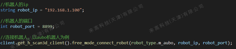 client.get_h_scan3d_client().free_mode_connect_robot(robot_type.m_aubo, robot_ip, robot_port);