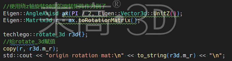 //使用繞z軸旋轉(zhuǎn)90度的旋轉(zhuǎn)矩陣作為例子