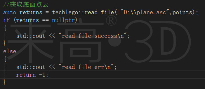 以下代碼展示了如何利用C++與Techlego庫執(zhí)行平面擬合并刪除指定平面上的點(diǎn)云: