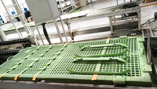 未采用自動噴漆之前,該項目擁有一條手動線。手動線的零件需人工擺放,傳送帶拖盤上的零件數(shù)量和品種擺放的也比較隨機。噴漆過程為人工手動噴漆,噴完一面后,傳送帶將零件送入烘干室完成后,由人工進(jìn)行零件翻面、人工噴漆,再送入烘干室烘干,完成噴涂過程。