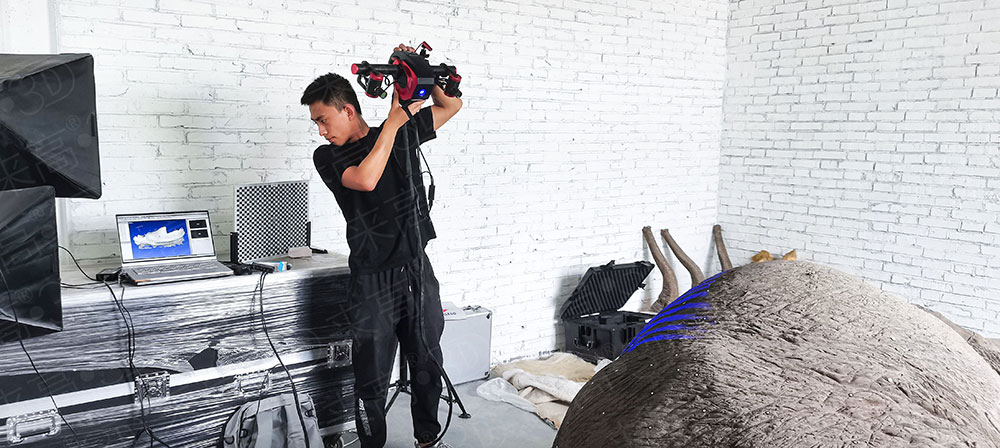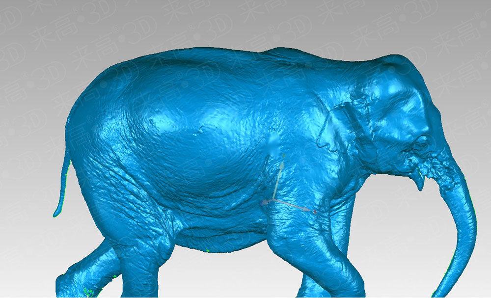 在大型物件掃描中,由于實物尺寸較大,角度多,選用手持式三維掃描儀進行大幅面、多角度、拼接快速的三維掃描,能夠較大程度的保留動物模型細節。來高科技的Q7手持三維掃描儀可以在0.01秒投光時間內,將采集數據快速、準確的還原至電腦中。Q7手持三維掃描儀尤其是在大尺寸、高細節、復雜工件的掃描中占有重要優勢。