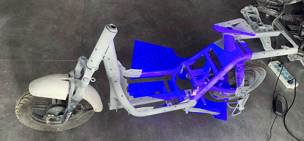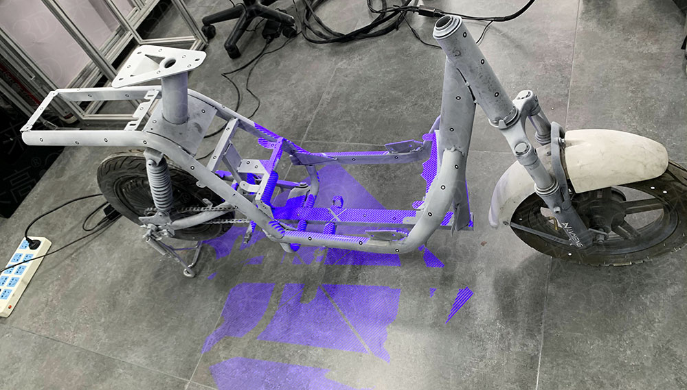 掃描難點:由于掃描件比較大,不好挪動,且電動車車架細節多,掃描有遮擋,掃描起來比較困難