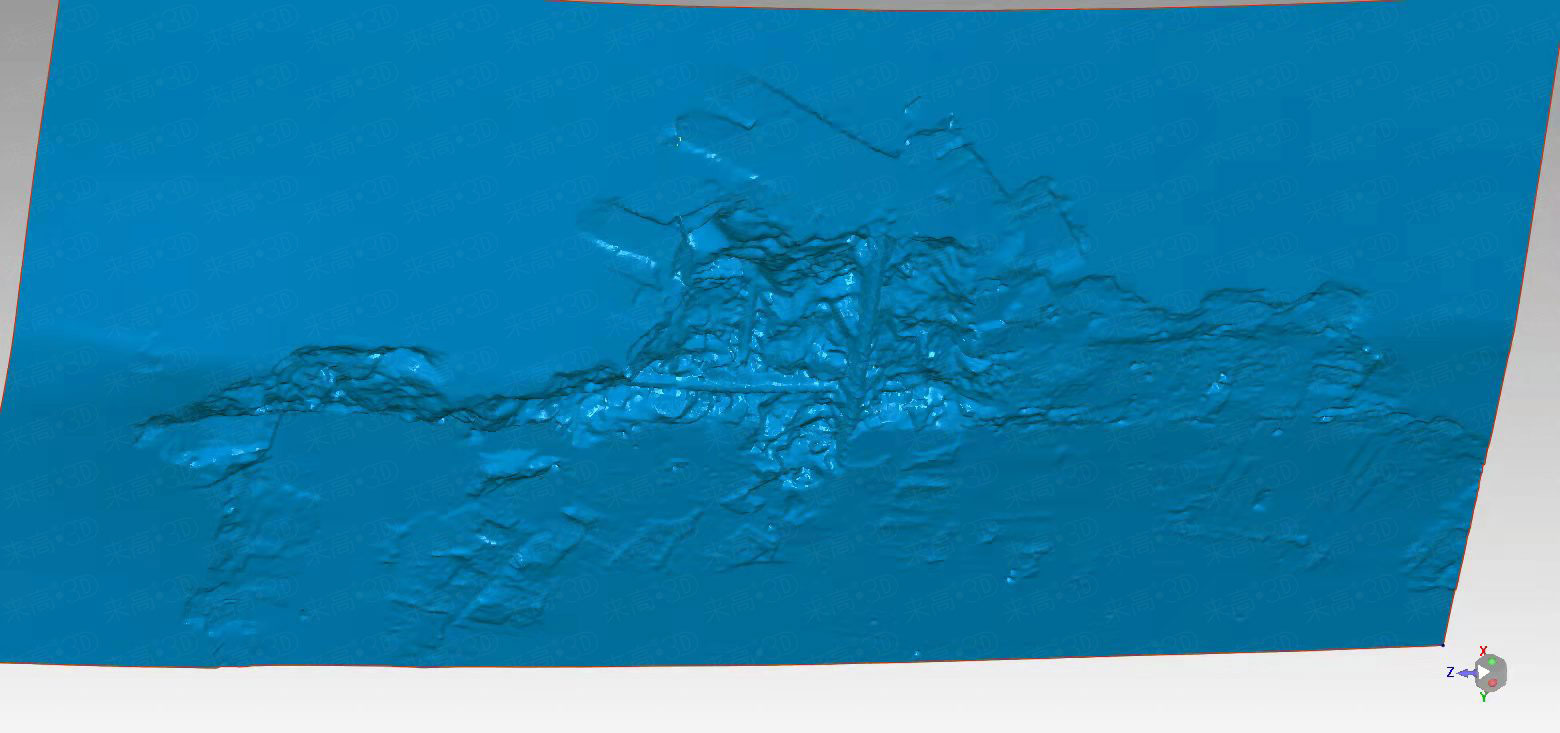 圖片為屋頂掃描后的三維數據,可以清楚的看到掃描結果還原了屋頂的塌陷以及墻皮脫落現象