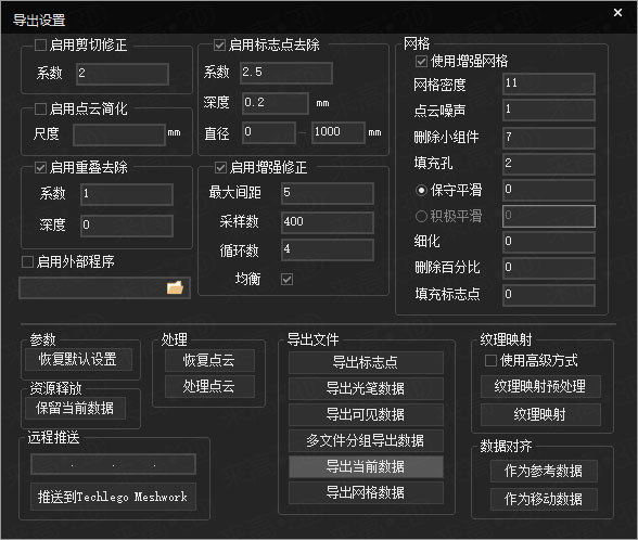 來高科技三維掃描軟件為封裝數據特別加入可視化調整界面。可針對不同物體、不同要求的掃描數據進行專項數據調整與優化。