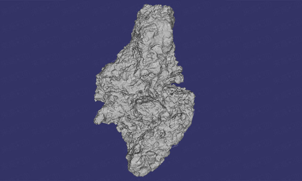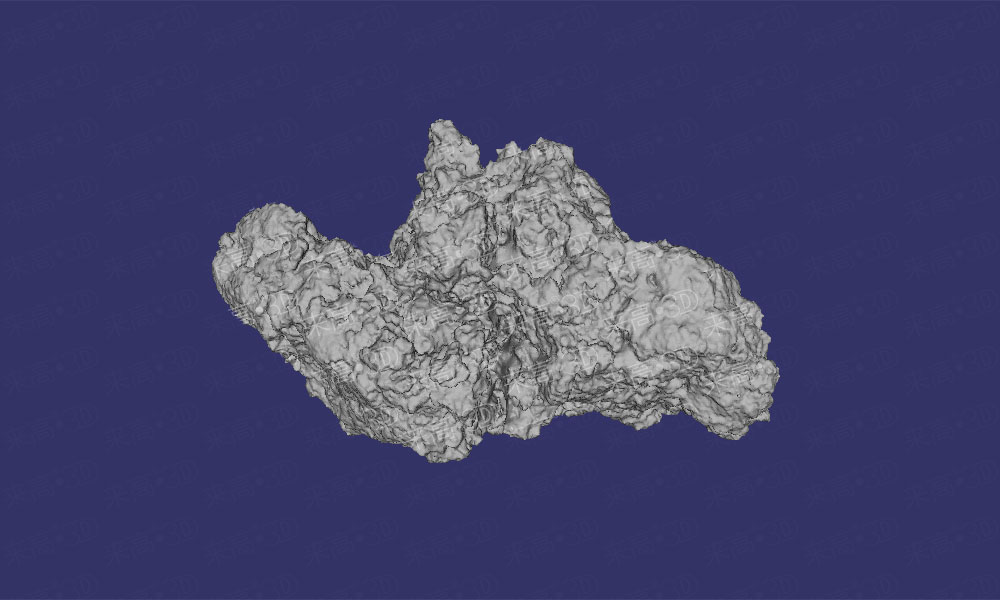 在使用高精度工業級三維掃描儀測量工件時,除了可以全尺寸三維檢測、二維尺寸檢測和形位公差檢測外,還可以測量工件的表面積和體積。本次案例的樣件(如下圖)是一個形狀不規則的金屬鈦粉塊,其主要難點有:材質特殊,形狀不規則、細節特征多、死角多,縫隙較深。