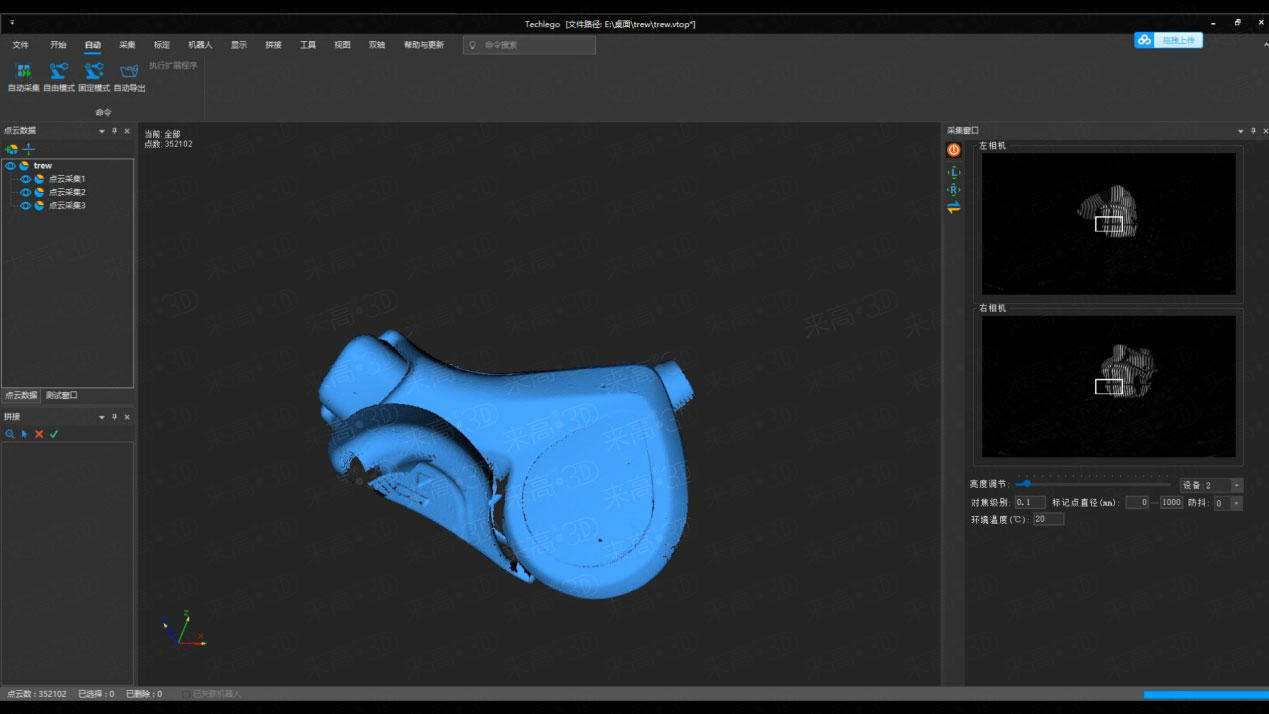 02 相比于結合機器人或者轉臺進行掃描,整體拼接得到的三維數據精度更高