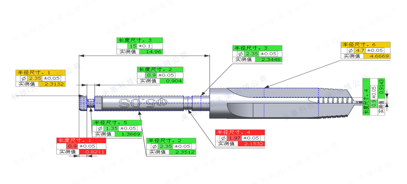 將三維數(shù)據(jù)導(dǎo)入到專業(yè)檢測軟件中,對獲取的三維數(shù)據(jù)深入分析,生成高標(biāo)準(zhǔn)檢測報告,直觀展現(xiàn)擴(kuò)孔鉆的各項尺寸參數(shù),評估其質(zhì)量狀況。