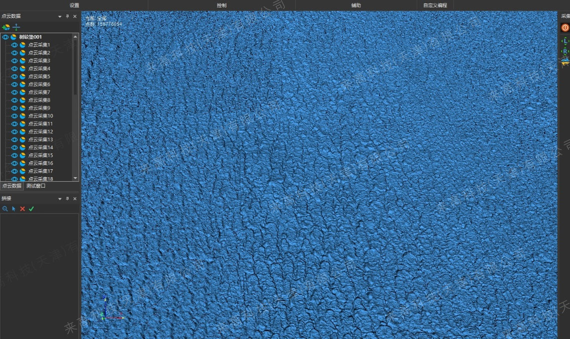 采用1200w像素高精度i9三維掃描儀,針對樹紋墊的特點調整掃描參數,確保每一處細節都能被準確捕捉。