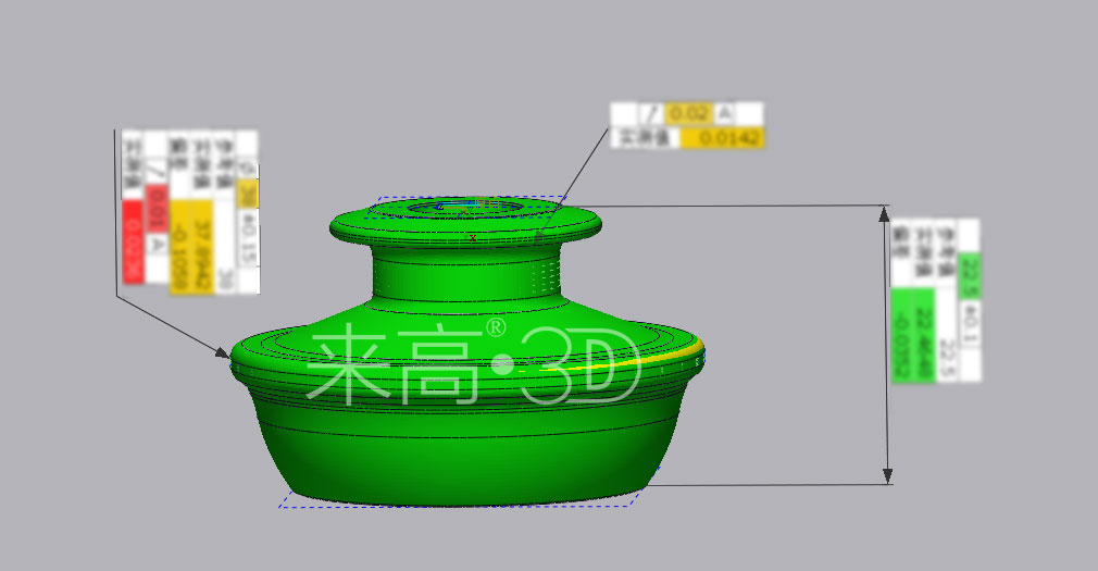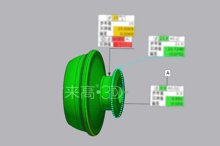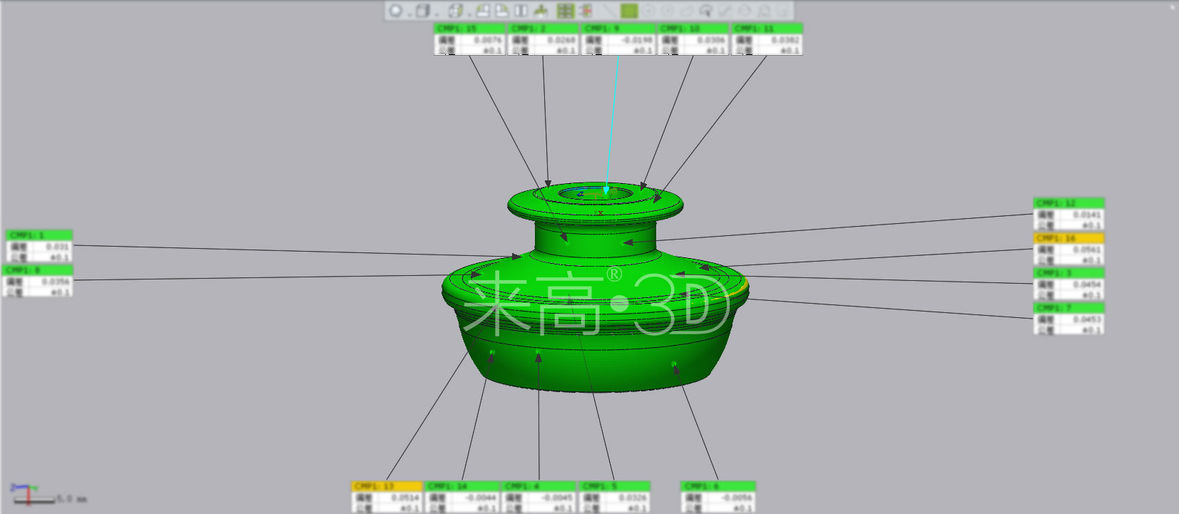 鑒于紡織線輪在制造過程中對精度有著嚴格的要求,為滿足這一需求,來高科技選擇了I9型三維掃描儀(1300w像素)及其配套軟件Techlego2025進行檢測。此方案不僅能夠提供高精度的三維掃描結果,而且通過將所得數據導入專業檢測軟件中,實現了與數模的全尺寸對比分析,從而獲得詳細直觀的檢測報告。