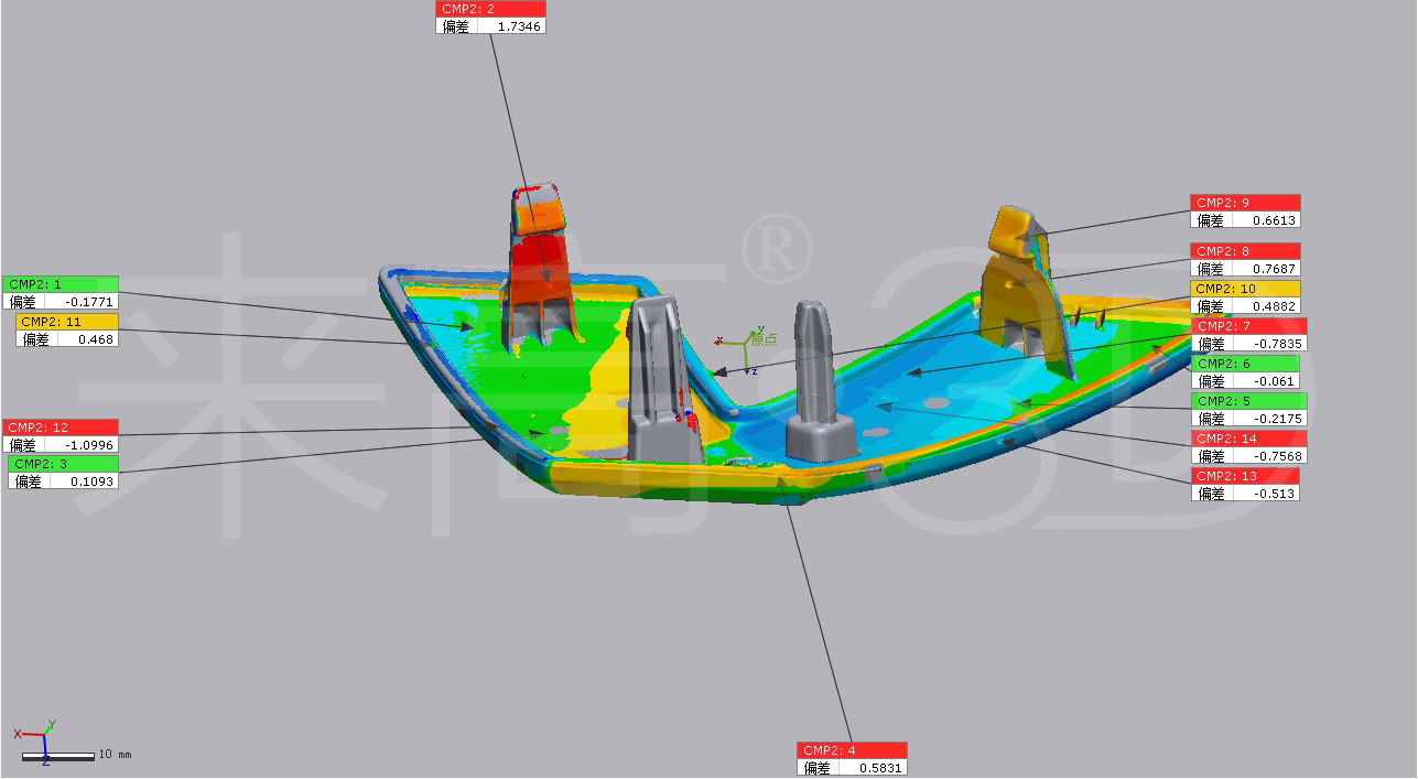 將獲取的三維模型數據導入檢測軟件中,與標準數模進行對比,通過色譜圖直觀展示差異,判斷產品質量是否符合標準。