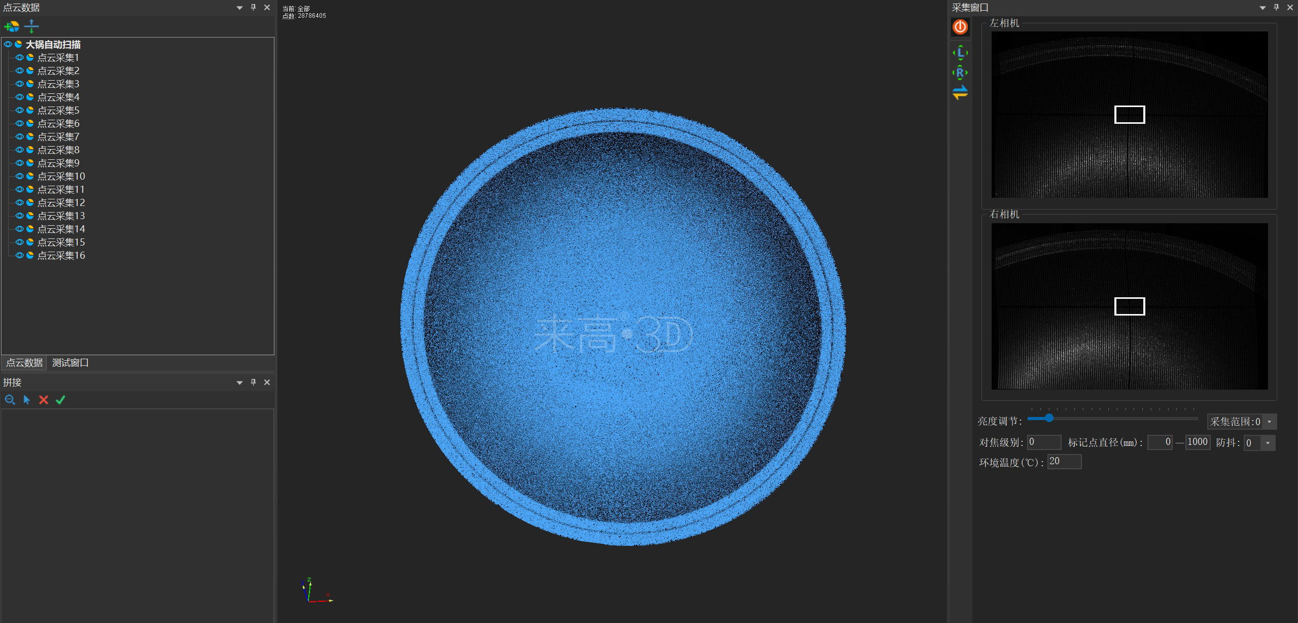 選用的G1Q是來高科技Smart-1系列工業級3D智能相機,擁有630萬高像素分辨率和0.6秒高速采集能力,能夠定制化調整采集范圍。該設備還支持通過SDK端口進行主動控制,適用于自動化生產線上的多種任務。