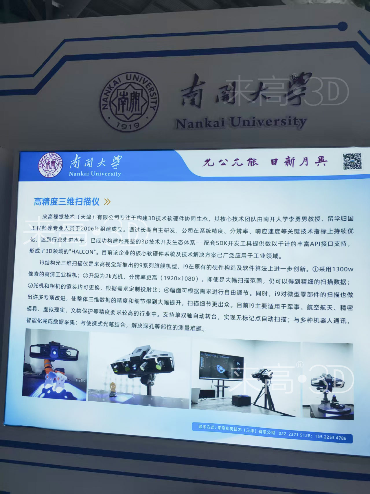 來高視覺有限公司專注于3D數字化技術的研發與應用,核心技術依托于南開大學李勇男教授科研團隊,自主研發出一系列包括高精度三維掃描儀、3D智能相機、3D攝影測量系統在內的3D視覺系統。此次高博會上,來高視覺核心展示了智能機器人3D視覺引導系統系列、機器人智能生產工藝實操教育平臺及實訓室建設平臺等前沿科技成果,充分展現了公司在工業級3D數字化領域的創新能力與技術實力。